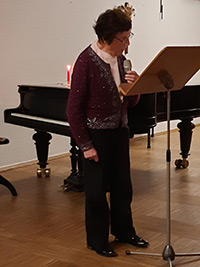 Bei so viel guter Stimmung durfte auch ein kölscher Beitrag nicht fehlen. Benita Schäffer erfreute uns mit einer kölschen Weihnachtsgeschichte, die beinhaltete, wie „e ahl Kreppche (Krippe) sing Bedücknis (Bedeutung) widderjefunge (wiedergefunden) hät“. Einfach köstlich.