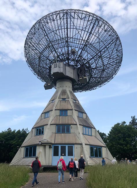 In Stockert steht das erste bewegliche Radioteleskop Deutschlands, 1956 mit 25 m Durchmesser gebaut, heute als Industriedenkmal im Eigentum der NRW-Stiftung Naturschutz, Heimat- und Kulturpflege. Betrieben wird es  von einem Förderverein, dessen ehrenamtliche Mitarbeiter uns mit großer Begeisterung, aber auch viel Fachwissen einführten in die Astrophysik und die Galaxie und es dabei noch schafften, uns die Materie in spannender, aber auch verständlicher Form näherzubringen. Wir hätten ihnen gerne noch länger gelauscht, aber es stand ja noch der 2. Höhepunkt auf unserem Programm: ein Besuch des Radioteleskops in Effelsberg, nur 11 km entfernt, beides in der Nähe von Bad Münstereifel. 1971 eingeweiht mit einem Durchmesser von 100 m, war es 29 Jahre lang das größte seiner Art auf der Welt, bis in den USA ein neues gebaut wurde mit einem Durchmesser von 102m!
