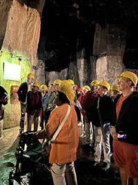 Gut vorbereitet über den Vulkanismus gingen wir ca. 250 m zum Lavakeller. In 32 m Tiefe über eine steile Treppe zeigte sich der Keller in einer Vielzahl von Stollen, die durch den Abbau von Basaltlava als Werksteine entstanden sind. Genutzt wurden diese Räume später von 28 Brauereien um ihr Bier zu lagern, bei einer gleichbleibenden Temperatur von 6 – 9 Grad Celsius, bis Carl von Linde in den 1870er Jahren die Kühltechnik erfunden hat. Ab da verschwanden bis auf eine alle Brauereien. Heutzutage kann auch im Lavakeller geheiratet werden. Wer nun Lust verspürt, dies zu tun, dann wenden Sie sich ans Standesamt Mendig. Vielleicht möchten Sie nun doch noch den Lavakeller und das Museum besuchen. Es lohnt sich. Zum Abschluss möchte ich es nicht versäumen, für den schönen und kurzweiligen Tag der Ideengeberin Dominique Trier zu danken.
